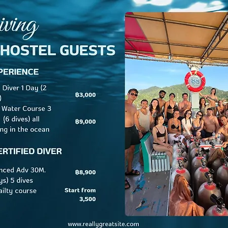 Scubadoo House And Diving hostel ligt slechts 350 meter verwijderd van Minigolf en biedt een gemeenschappelijke lounge waar gasten kunnen ontspannen. Deze accommodatie beschikt over draadloos internet in de hele accommodatie en ligt op 2 km van het Strand van Sai Nuan.